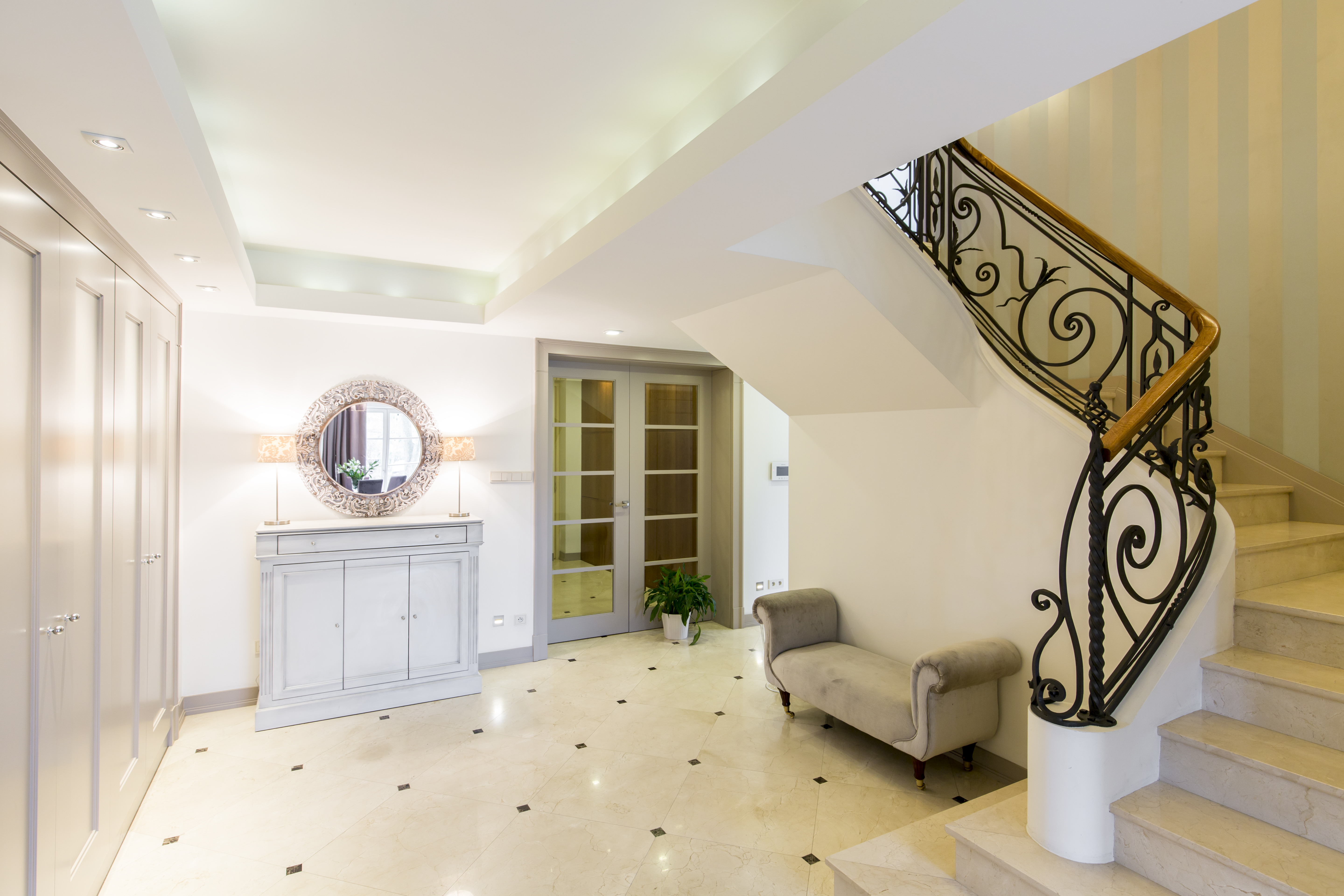 Elegant hallway with a stylish staircase Published July 14, 2019 at 5760 × 3840 in Elegant hallway with a stylish staircase Shot of an elegant hallway with a stylish staircase, designed in white ← Previous Next →